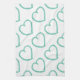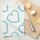 Hand plockade hjärtan formblått på vitt kökshandduk