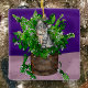 En söt hand plockade grått tabby katt kitten sitta i en hink av katnip, gullig personlig julprydnad.