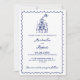 Spelfull och modern bröllopsinbjudan med allt-i-ett-roligten som innehåller en handritad bild av champagne torn och vismisk handskriven marinblått skript på en skarp vit bakgrund. Framsidan kombinerar fet och avslappnad handskriven typsnitt i ett skalat gräns och skapar en ljusare perfekt än snyggt för avslappnat, glatt firande. Den samordnade bakgrunden innehåller motsvarande handritade ikoner, en skannerbar QR-kod och väl organiserade sektioner för mottagning, logi, OSA, bröllop webbplats eller andra detaljer. Perfekt för par att planera en cocktail-stil-bröllop, firande med dans eller icke-traditionell händelse. anpassadets inbjudan blandar roligt och funktionalitet med contemporaryns charm. Finns som tryckta kort eller en snabb digital nedladdning.