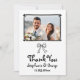 Svart och vit hand plockade-klocka, bröllop tack... Du har kort i retro Fench stil. Den här bröllopsinbjudan visar parets foto i en charmerande, handritad ram med hjärtan i hörnen och en båge som förstärks av ett handskrivet teckensnitt. Parets "Tack"-meddelande är på baksidan långt med nylingarna.