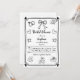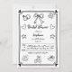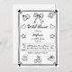 Hand plockade, svart och vit, klok, vit, vismisk reflektor Fransk bröllop inbjudningskort för möhippan. En snabb och visuell inbjudan som innehåller handritade illustrationer av flera vinklade dockor, inklusive hjärtan, ring och en båge. Det handskrivna teckensnittet och ram med hjärtan i hörnen ger en trevlig beröring som perfekt återspeglar glädjen och upprördheten hos möhippan firande.