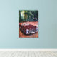 Handdragen burgundbil för Vintage av Oljemålning på arbetsyta som skapats av konstnären. Retro målar unik röd auto på arbetsytan.