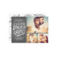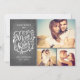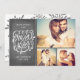 Romantiskt och modernt multifotokort i helgdag med hand plockade-typografi som säger "Merry Kisses". Perfekt för det nygifta paret. Kommer med en snöflingdesign på baksidan.