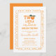 Hand plockade Orange Två små fall är på väg att bjudas in. Barnduschinbjudan till orangen, babydusch för citrusfrukter