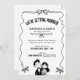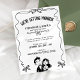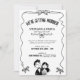Den här svarta och vita bröllopsinbjudan har en enda vågigt ribbon ram med små bögar och ett sött par från hand plockade. Den bådade rubriken och den rena layouten lämnar stort utrymme för namn, datum och plats, och du kan ändra färg för alla illustrationer så att de passar perfekt för din bröllop-palett. Monokroma teckningar skrivs ut på ett vackert sätt på alla pappra och fungerar lika bra för firande, stadselement eller klassiska ceremonier. Anpassa texten med dina detaljer och säg mig gärna om du vill samordna delar.