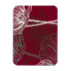 Snyggt vit och grått hand plockade teckning av poppies på mörkens röda bakgrund.
