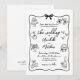 Quirky Hand-Drawn Whimsical bröllopsinbjudan. Denna konstnärliga och lekfulla design är perfekt för par att tittar att förse sin stora dag med ett kreativ, ljusare vibe. Nu i en elegant svart och vit palett har den en handdragen charm som är både modern och tidlös. Ett snurrande, vågigt ram med ett enkelt båge högdagrar dina uppgifter om bröllop, som presenteras i en blandning av elegant och handskript och stil typsnitt för ett avslappnat men sofistikerat utseende. Konstruktionen har svarta skisser av ikonisk bröllop inslag, t.ex. ringar, en skiktad kaka, en champagne flaska med ett glas, blommor och en "Ny gifta"-bil, som alla ställs mot en ren vit bakgrund. De här vinklade doolerna ger en contemporary, konstnärligt lugn samtidigt som de bevarar elegansen. I baksidan finns en skannerbar QR-kod och plats för en webbplatslänk, vilket gör att gästerna enkelt kan komma åt mer information om din speciella dag. Med den här inbjudan kan du redigera text, typsnitt och layout till kostym i stil. Oavsett om du skriver ut eller delar digitalt är det en snyggt och ett utmärkande sätt att tillkännage firande.
