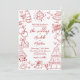 Hand plockade Quirky Sketches Red Whimsical Wedding bjudande. Perfekt för par som vill ha ett kreativ, lätt beröring, denna lekande design utmärker sig med en dynamisk arrangemang av stora hand plockade-illustrationer som omger texten och som flödar från kant för ett konstnärligt och modernt utseende. Den är formaterad i en röd och vit palett i färg, den känns personlig och unik, blandande charm med elegans. Konstruktionen har roligt och visuella skisser av bröllop inslag, inklusive ett mousserande diskotek boll, bröllop klockor, en vintage kamera, en champagne torn, hjärtan, en skiktad kaka, blommor och en Ny gifta-bil. De här krånglorna ge inbjuder till ett livligt, omsorgsfullt vide, samtidigt som de bibehåller ett sofistikerat estetiskt. Dina uppgifter om bröllop visas i en blandning av skript och handskrivet stil typsnitt, vilket ökar avslappnadens tilltalande snyggt. Den här utformningen har både italienska och Fransk stil inslag, vilket gör att internationell får en liten fläkt. Med den här inbjudan kan du justera färg, text och layout helt och hållet till anpassade för din vision. Oavsett om du skriver ut eller delar digitalt är det ett unikt och minnesvärt sätt att tillkännage din speciella dag. Tack för ditt tålamod och din feedback!