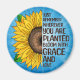 Söt gult hand plockade solros med färgad bakgrund. Inspirationsoffert. Kom ihåg var du är planterad att blomma med kärlek och nåd.