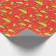Coola presentförpackning tryckt med hand plockade tasty taco snäcka, chillies och cacti på röd bakgrund. Perfekt för tako älskare, matkartor och mexikanska köksmästare