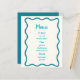 Den här utformningen har en enkel, vismisk, handdragen stil vågigt gräns. Det teckensnitt som används för huvudtexten är avslappnad och leksak, med en handskriven kvalitet, ge en personlig, intim beröring. Använda den här designen om du vill prioritera en vänlig och lättillgänglig vib till bröllop framför formalitet.