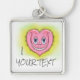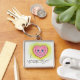 Hand plockade Tecknad Smildrande Rosa I hjärta Fyrkantig Silverfärgad Nyckelring