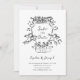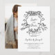 Dessa snyggt-, svartvitt- och vita bröllop spara datum-kort är en handritad illustration av en bröllop-vapensköld med körsbärare och blommor. Texten är en blandning av handskrivet trendig och klassisk text för ett visstiskt och romantiskt utseende. Lägg till ditt favoritfoto längst bak.
