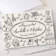 Handritad Quirky Sketches Whimsical Bröllop Guest Bok. Det här kreativet och den här leksaken är perfekt för par som vill ha en unik och lättad nyckelroll för sin speciella dag. Gästen bok är formaterad med en vintage-inspirerad svartvit bakgrund och tidslösa svarta illustrationer och har handritade skisser av roligt som flyter dynamiskt över framsidan, baksidan och ryggraden för ett sammanhängande, konstnärligt utseende. Täcket visar på teckning i bröllop inslag, inklusive ett mousserande diskotek boll, bröllop klockor, en vintage kamera, en champagne torn, hjärtan, en skiktad kaka, blommor och en Ny gifta-bil, ge utformningen av en livlig ännu elegant vibe. I mitten visas ord "Bröllop Guestbook", bridens och gruppens namn och bröllop-datumet i lekfulla, handritade Dodle-ovaler, och texten skapar ut medan den binds till hela skissen stil. På baksidan binder ett enkelt inledande monogram av bruden och brudgummens första initialerna samman formgivningen. I ryggraden ingår datumet namn och bröllop, och den här gästen bok skapar ett vackert och minnesvärt tillägg till firande. Helt anpassade till kostym din stil, det finns som tryckt keepsaké.