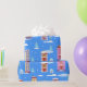 Hand plockade vintersömlös mönster med söta skandinaviska hus, träd, snö, snö banker på blå botten.