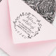 Anpassa enkelt dessa anpassningsbar Hand plockade, Bröllop Returadress gummi frimärke av utandningsluften med namn och adress. Om du vill anpassa gummimallen klickar du på "Anpassa den här frimärket" och ändrar texten i rutorna. Tillgänglig med olika färger i bläck-plattan (ingår inte) i kvadratiska storlekar 1 tum, 2 tum eller 2,5 tum eller rektangulära storlekar 1 x 2,5 tum, 1,5 x 3 tum och 4 x 5 tum med handtag eller utan handtag. OBSERVERA: Våra standardstorlekar för frimärke av trägummi är en kvadrat på 1 tum eller en rektangel på 1 x 2,5 tum. Se din design på bildskärmen så nära den faktiska storleka som möjligt för att se till att texten skrivs ut på förväntad storlek. Returadressen gummi frimärke är lasergraverat på skumskydd. Ingen minsta orderkvantitet.