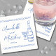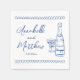 Personlig Hand plockade Champagne Whimsical Bröllop Napkins. Den här eleganten och den minimalistiska bröllop-cocktail-napkin har en charmerande hand plockade illustration av champagne flaska och glas, perfekt för att fira er särskilda tilldragelse. I mjuka blåa och vita tonar visas namn och bröllop-datumet för bruden och brudgummen elegant under teckningen i en blandning av handskript och enkelt typsnitt, vilket skapar en snyggt som fortfarande går att komma åt. Utformningen är ramad med dekorativa gräns-accenter, vilket ger en subtil sofistikering av napkin. Med det här anpassadet kan du justera texten och layouten till kostym på temat bröllop och färg palett. Perfekt för bröllopsreceptioner. Den fungerar också utmärkt för en repetitionsmiddag eller möhippa, skapar den ett mångsidigt och elegant tillägg till firande.