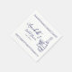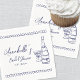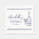 Personlig Hand- Drawn Champagne Whimsical Möhippa Napkins. Dessa elegant cocktailblöjor har en charmerande, handritad illustration av champagne flaska och glas i marblått, perfekt för att fira specialtillfället. Under teckningen visas "[Brides Namn] Möhippa" och datumet elegant i en blandning av handskrivna skript och enkelt typsnitt i marint blått för en snyggt som ändå kan nås. Fullständigt anpassade för att matcha möhippans tema.