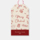 Hand plockade Whimsical Red Doodle-jul Presentetikett