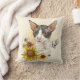 Hand teckning Cornish Rex-katt med solblommor Kudde