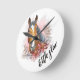 Hand teckning häst med växter och blommor kasta p rund klocka