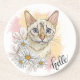 En bra design med teckning söt och rolig snö-bengalkatt med kamomiler.