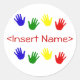 Den här söta, anpassade designen för handtryck är fantastisk för alla unga och gamla. Den är färglös med blå röd grönt och gult handavtryck.