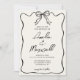 Ange tonen för din drömdag med den här lovvärda bröllopsinbjudan! Med en söt, svart, handdragen coquette-band på gräns är det sött, snyggt och helt enkelt du. Anpassa det med dina detaljer för att skapa perfekten inbjudan för ditt romantiska firande!