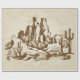 Handdragen skiss. Typiskt liggande öknen Arizona, USA. Westerna berg och konton på en gammal papper.