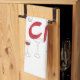 Handdragna glasögon och flaska cin-text kökshandduk