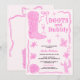 Fira i stil med vår hand plockade "Boots and Bubly" inbjudningskort för möhippan, perfekt för en roligt- och chic-utsändning av land. Den här lekande designen innehåller handritade illustrationer av en snyggt cowboybock, ett champagneglas och inslag av viskartad blommigt, allt i redigerbar pulserande rosa och pastel. Med avslappnaden och det framstående teckensnittet får du en aning charm och anger perfektens ton för ett glatt och minnesvärt firande. Inbjudan är helt redigerbar, vilket gör att du kan anpassa texten och färg för att matcha ditt unika tema för möhippa. Vare sig du är värd för en bakgårdsplats eller en rustik vinodling i party, ser den här inbjudan till dina gäster att bli upphetsade för festligheterna.