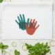 Behöver du en handduk för att torka händer i köket? Det är inget fel på vad den här handduken ska användas till. Varje ände har en teal och röd uppsättning handavtryck med orden "handduk" tryckt över dem. Håll den på kylskåpet eller nära tvättmaskinen där den säkert kommer att synas och användas för avsett ändamål. Finns även i terracotta och oliver.