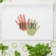 Behöver du en handduk för att torka händer i köket? Det är inget fel på vad den här handduken ska användas till. Varje ände har en terra cotta och en uppsättning handavtryck med ord "handduk" tryckt över dem. Håll den på kylskåpet eller nära tvättmaskinen där den säkert kommer att synas och användas för avsett ändamål. Finns även i teve och rött