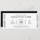 Skapa anpassningsbar event biljett för ditt företag eller din privata händelse med den här moderna Biljett-designen för Admit One Event. Med minimalistiskt typsnitt, professionell med plats för evenemanget namn, datum, adress, biljett prist samt logotyp och villkor och villkor på baksidan. Det här fullt redigerbara företaget biljett kan användas som inträdeskort för galnätter, penninginsamlare, konserter, födelsedagspresent biljett, bröllop biljett eller andra typer av evenemang.