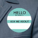 "Hej My Namn is" skriva på namn bricka med ett andra utrymme för "Fråga mig om". Händelsegästen kan skriva i namn och något om sig själva för att starta ett samtal. Den ljusa bakgrunden kan ändras till valfri färg och all text kan redigeras. Underbar för återföreningar, nätverksevenemang, party.