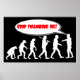Det ser underbart ut på baksidan av en mörk skjorta, eller föremål med mörk bakgrunder. Den här utformningen användor det gamla evolutionsprojektet figurer, som börjar med apnet och går vidare till modern man. Men den siste mannen har vänt sig till ansikte de andra och han har en tal-bubbla ovanför huvudet som säger "sluta följa mig". En underbar gåva till både evolutionister och skapare.