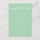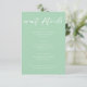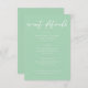 Det här evenemangskortet för den mjuka mint grönt bröllop har chic vit typografi för en söt utlandsceremoni i vår. Ett enkelt skript och ett elegant på en stillastående grönt- och gästmottagningskort för en trädgårdsplats.