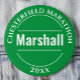 En bricka för en händelselagstiftning. Ändra ordalydelsen till dina detaljer. Marshall-bricka. Officiell-märke. Grönt och vitt.