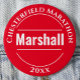En bricka för en händelselagstiftning. Ändra ordalydelsen till dina detaljer. Marshall-bricka. Officiell-märke. Röd och vit.