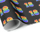 Den här roligten, som är färglös och vibrerande papper design, har nummer "18" med en flerfärgad regnbåge som inspirerar spektrumövertoningen mönster, på en svart färgad. En sådan här omslagning skulle kanske kunna användas när man slår in presenter eller gåvor som ges för någons artonde födelsedag, eller kanske för ett pars artonde bröllop-årsdag eller något annat artonde evenemang. [~Z0000338]