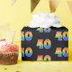 Den här roligten, som är färglös och vibrerande papper design, har nummer "40" med en flerfärgad regnbåge som spektrumövertoning mönster, på en svart färgad. Papper som denna kan användas när man slår in presenter eller gåvor som ges för någons fyrtioårsdag, eller kanske för ett pars fyrtioårsdag bröllop eller något annat fyrtioårsjubileum. [~Z0000338]