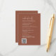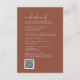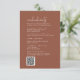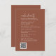 Denna moderna chic terracotta rostar bröllop helg-händelsekort är perfekt för ett enkelt bröllop. Konstruktionen av ökenboho har en strålande unik och snyggt bohemisk typografi i en jordnära bränd orange Rust färg. Ta med en QR-kod som gästerna kan söka igenom för att få mer information.