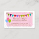 ©Socialitedesigner 2011. Våra eleganta händelseutforma och designvisitkortar har en elegant bordinställning med det godisskål-, ljuskrona- och klotterbanret. Baksidaen av visitkorten har ballonger och ett färgrikt väggbaner. Personifiera denna stilfulla händelseplannervisitkort med din information.