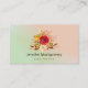 Affärskorten för modern professionell för evenemangsplanerare, blomsterföretag eller andra blommigtar är teman för företag. Designad med en söt blommigt av vildblommor med blommor i rött och gult, kontrasterad med rosa och brunt löv och sprit. Ställ in på en mint-grönt och ljuskorall rosa-övertoningsbakgrund.
