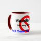 Händer av - min mugg: undertecknar den stora "händer av" och utrymme för DITT namn i text över ett stopp/ett stopp på den kvalitets- muggen i en stil och en färg av ditt primat.