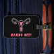 Visa ditt stöd för kvinnors höger att välja med den här bagagetaggen med rosa- och grått-uterusgrafik med texten "händer av" på svart bakgrund