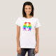 Den gulliga t-skjortan med regnbågen färgade stripy förälskade pingvinsilhouettes, innehavhänder.