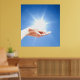 Händer på blå bakgrund, reiki, chakra poster