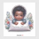 Det finns inget som liknar händer från ett dyrbart baby. Det här söta klistermärket har en afrikansk-amerikansk pojke med sitt dyrbara händer på en kudde. Han har den här rundan ansikte med ljusbrunt ögon och ett vackert leende.