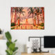 Handflatan träd och rosa himlar är en del av den ikoniska jorden i Handflatan Beach, FL, vilket visas i denna färgstarka fotografiska bild med nytäckt brev.
